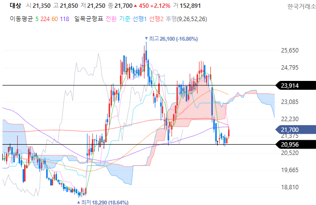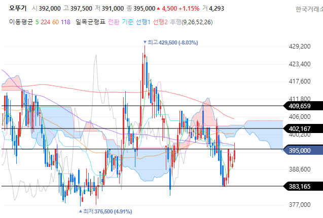식품주가 전반적으로 지지를 받으면서 상승하고 있는 것 같습니다. 상승세가 바로 앞에 있는 저항선을 얼마나 돌파하는지에 따라서 5~8% 정도 수익을 먹고 나와야 될지 아니면 더 비중을 잡아도 될지가 결정되겠지만 말입니다.