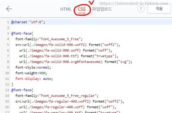 (1) 먼저 티스토리 스킨 관리자 페이지에서 [꾸미기]-[스킨 편집]-[html 편집]-[css]로 들어갑니다.