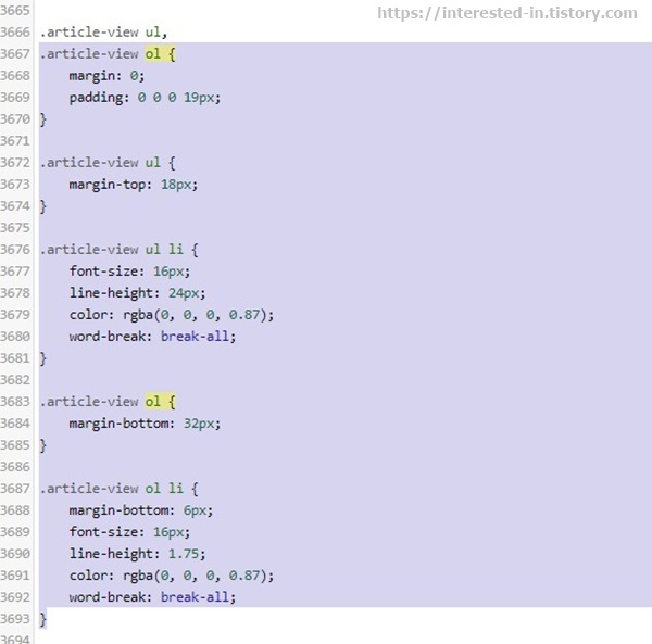 위와 같이 서식을 활용하면 ol, ul 태그를 자동 작성이 되는데요. 해당 html의 속성을 css에서 별도로 수정하여 색상 및 크기를 변경할 수 있습니다.