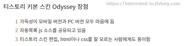 | 티스토리 기본 스킨 Odyssey 선택 이유와 HTML CSS 편집으로 제목 상단 이미지 배너 출력 없애기 (2) | 2020.11.06 |