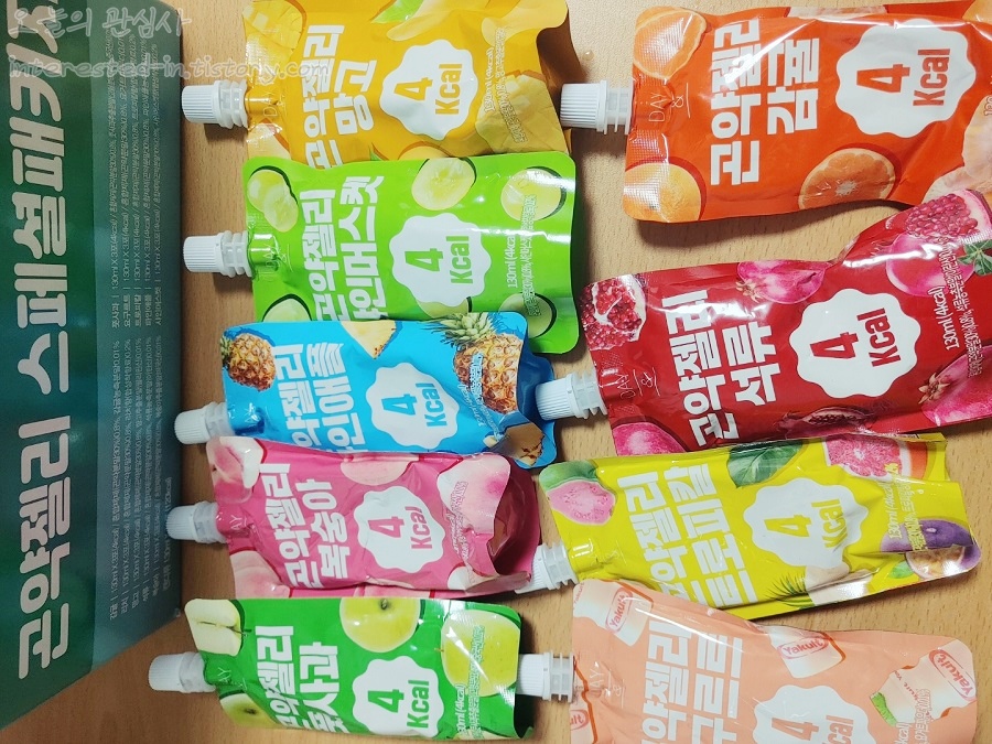 곤약젤리도 종류가 많습니다. 여러 종류를 먹어봤는데요. 곤약 특유의 향이 남아 있는 제품들도 있었습니다. 곤약젤리라고는 하더라도, 일반 젤리와 다를 것이 없는 제품을 찾고 있었는데요.