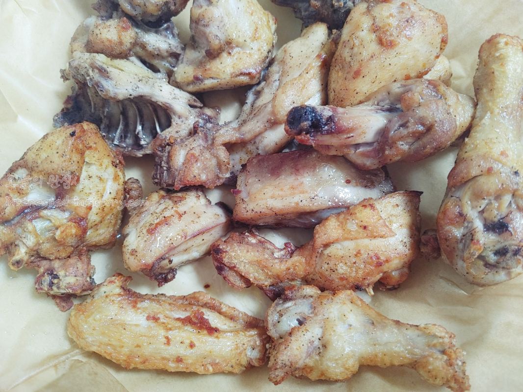 - 해동한 닭을 소금과 후추로 간을 하고 10-20분 정도 실온에 두기
